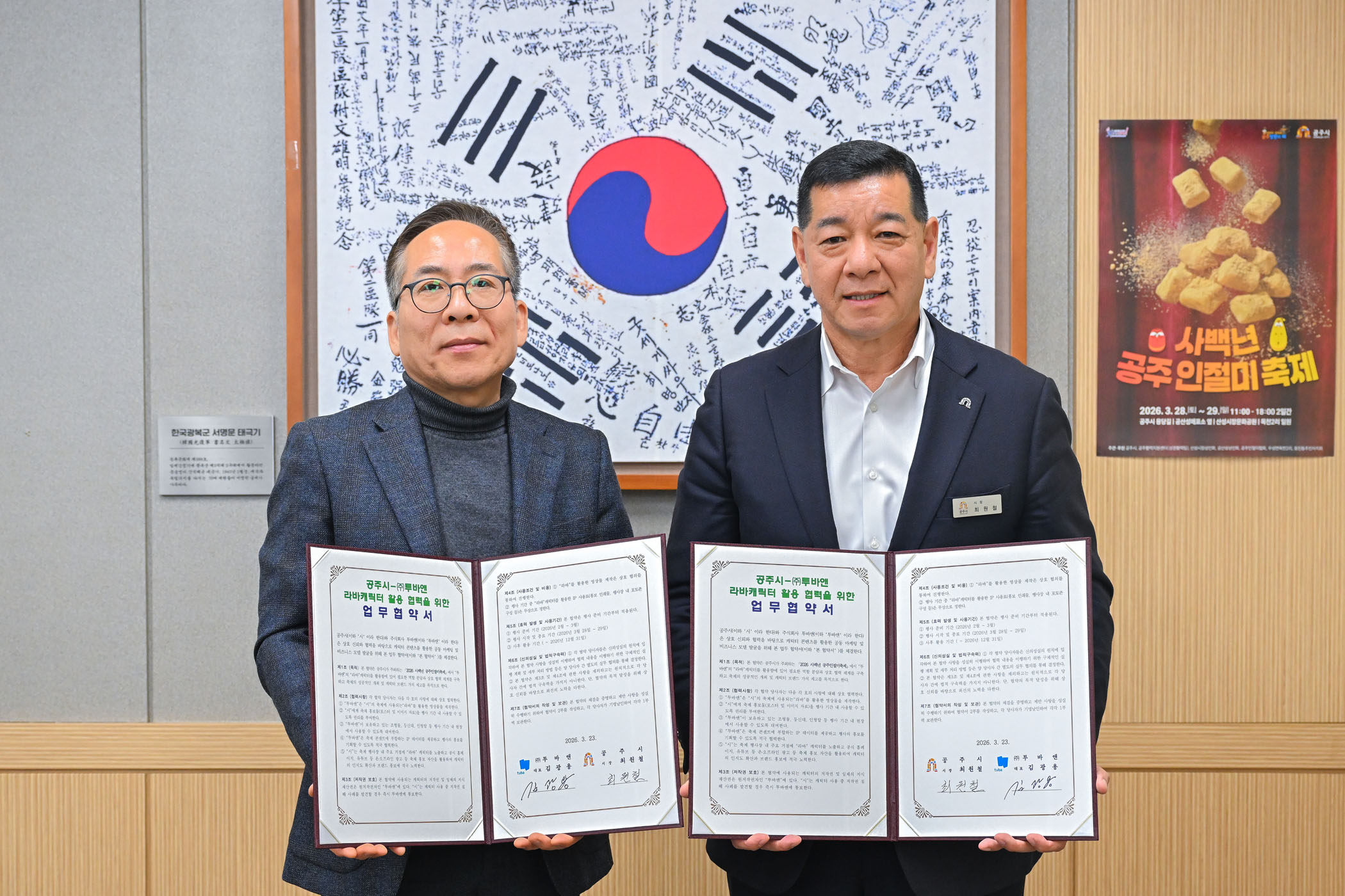 2026년 3월 23일 공주인절미축제 캐릭터 활용 홍보 업무협약-(주)투바앤 [상황실]